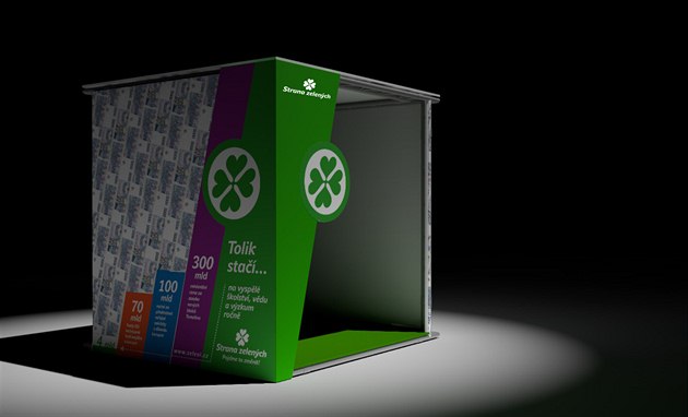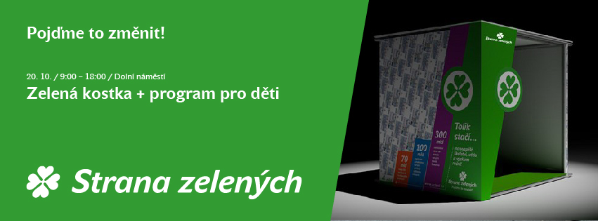 Zelená kostka má za cíl seznámit veřejnost i média pomocí velkoplošné prezentace s programovými prioritami a osobnostmi kandidátů a kandidátek Strany zelených. Světelná kostka reprezentuje mimo jiné objem 100 miliard Kč v pětitisícových bankovkách a názorně ukazuje, jak bídně s veřejnými financemi dosud nakládal stát a jak inteligentně dokáží zdroje investovat zelení.