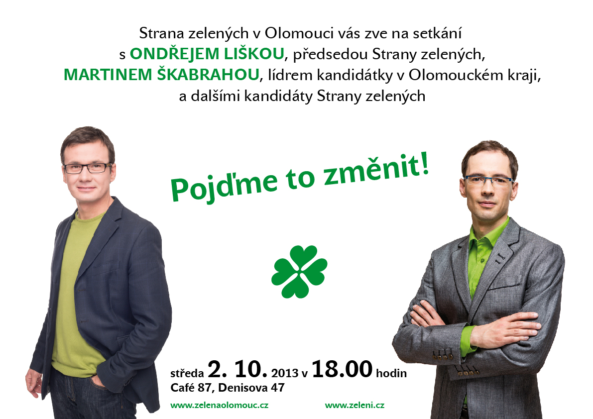 O těchto a dalších otázkách budou debatovat předseda Strany zelených Ondřej Liška a Martin Škabraha, lídr olomoucké kandidátky.